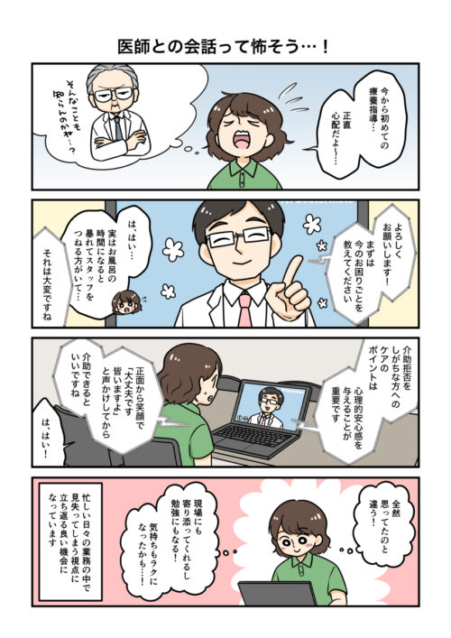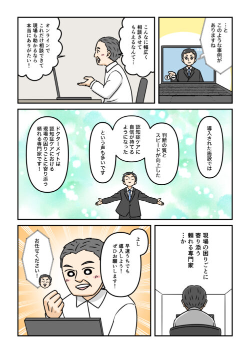 サービス資料用漫画制作【ドクターメイト株式会社さま】 GALLERY 2025.10.27 ドクターメイト株式会社様の資料用の漫画を制作いたしました。 ストーリー漫画形式と4コマ漫画形式どちらも使うことで、課題解決のパートをわかり易く表現しています。 (掲載は一部です)